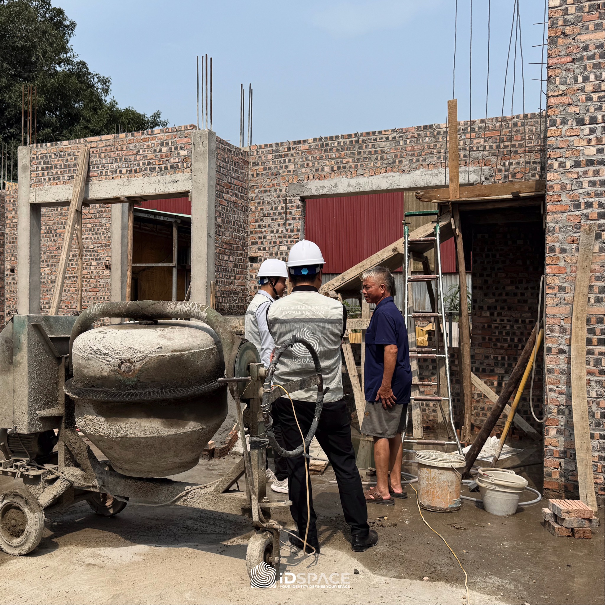 Trở lại với Dự án Abnormal-D tại Tiên Du, Bắc Ninh, đội ngũ Kiến trúc IDSpace tiếp tục theo dõi sát sao tiến độ và kiểm soát chất lượng ở giai đoạn thi công. Đây là thời điểm quan trọng, nơi ý tưởng trên bản vẽ được chuyển hóa thành hình khối thực tế – từng đường nét, từng tỷ lệ đều cần được triển khai chính xác để bảo toàn tinh thần thiết kế gốc.