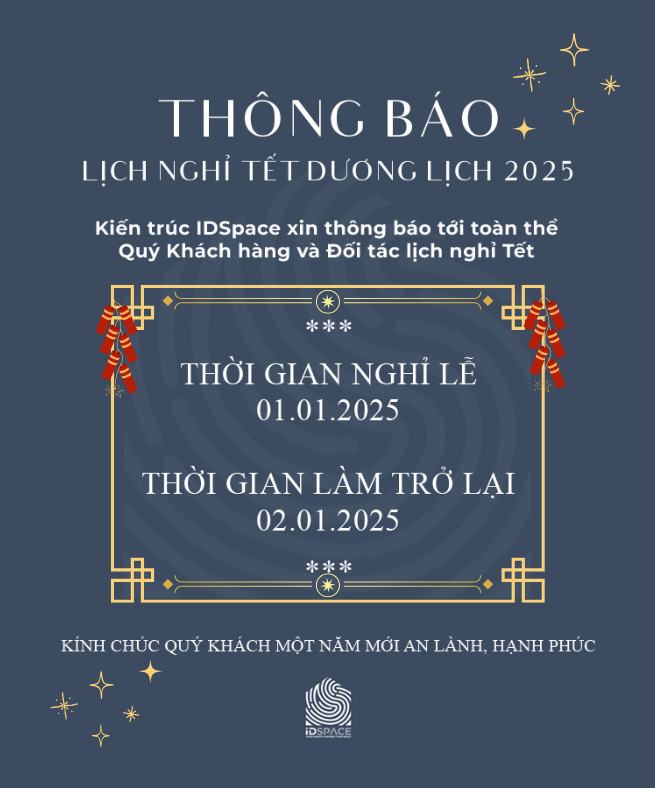 Kính gửi Quý Khách hàng và Đối tác, Kiến trúc IDSpace trân trọng gửi lời tri ân đến Quý khách vì đã tin tưởng và đồng hành cùng chúng tôi trong suốt chặng đường vừa qua. Nhân dịp Tết Dương…