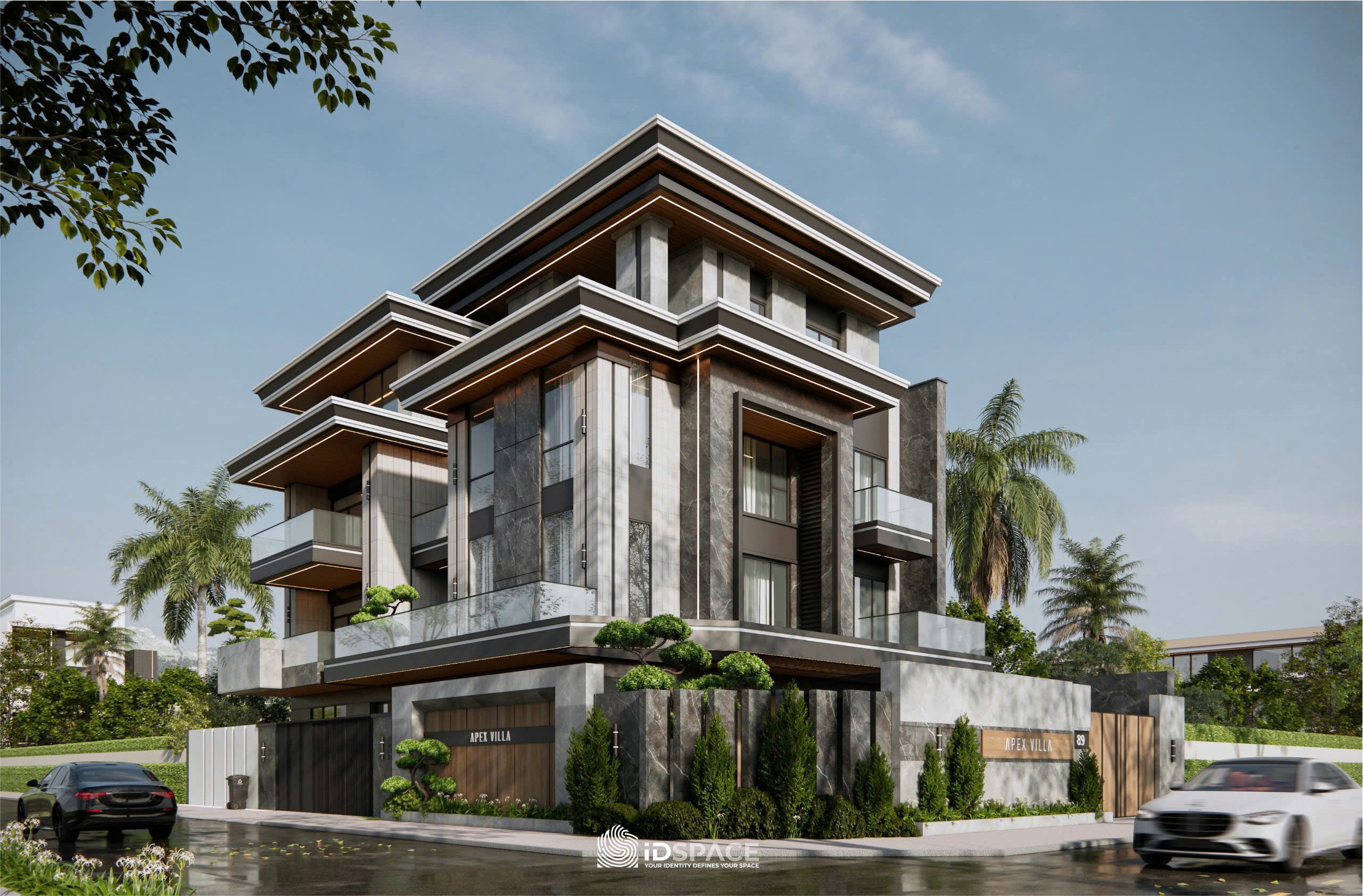 Sử dụng hình khối tối giản, mảng tường phẳng kết hợp kính cường lực, ban công xanh. Thiết kế hiện đại mang lại sự trẻ trung, sang trọng và thoáng đãng, phù hợp với xu hướng kiến trúc ngày nay.