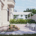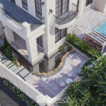 Những chi tiết vòm cong thanh lịch, hệ cột và gờ phào được tiết chế vừa đủ để Eterna Villa gợi cảm giác hoài cổ mà không rườm rà. Trên nền trắng tinh khôi, các chi tiết kiến trúc nổi khối tạo nên nhịp điệu nhẹ nhàng, sang trọng, điểm xuyết bởi hàng cây xanh mềm mại, giúp công trình hòa mình với thiên nhiên. Ở đây, từng chi tiết đều được tiết chế để giữ lại sự sang trọng nhưng không phô trương.