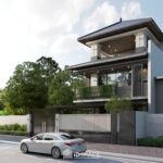 Tổng thể kiến trúc sử dụng bảng màu trung tính làm chủ đạo, điểm xuyết những chi tiết gỗ tinh tế – vừa giữ được nét tự nhiên, vừa tạo cảm giác sang trọng, bền vững. Kính được sử dụng như một yếu tố trung gian, kết nối các không gian và mở rộng tầm nhìn, giúp ánh sáng và nhịp sống len vào từng góc nhà một cách nhẹ nhàng.