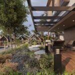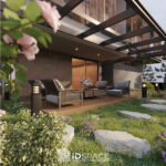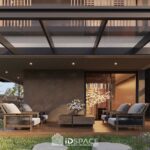 Hệ lam chắn nắng được triển khai vừa là lớp bảo vệ thụ động trước bức xạ mặt trời, vừa tổ chức ánh sáng tự nhiên đi vào công trình một cách có kiểm soát. Cấu trúc lam tạo nên các lớp bóng đổ chuyển động theo thời gian trong ngày, làm nền cho một nhịp sống ổn định và điều hòa vi khí hậu trong không gian ở. Không gian được mở rộng mà không cần đến các điểm tựa dày đặc. Giải pháp này không chỉ tối đa hoá tầm nhìn, mà còn thúc đẩy sự kết nối giữa các lớp không gian nội – ngoại thất, tạo ra trải nghiệm sống xuyên suốt, liền mạch và tự nhiên.