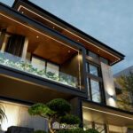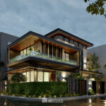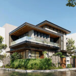 Từ yêu cầu đó Kiến Trúc IDSpace tập trung vào việc tạo ra một không gian phản ánh đúng mong đợi của gia chủ. Công trình được định hình theo phong cách hiện đại tối giản với ngôn ngữ kiến trúc rõ ràng, mạch khối mạnh mẽ nhưng tinh tế.
