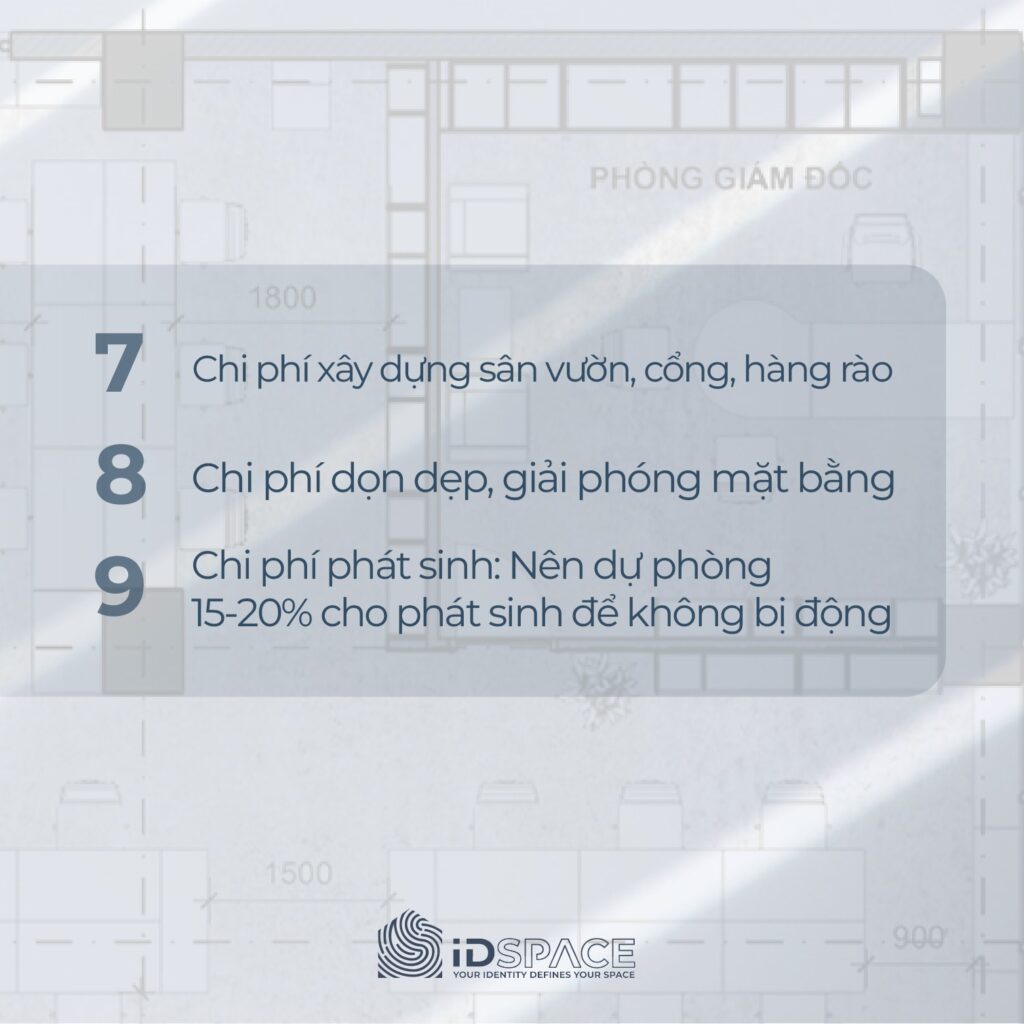 Hiểu rõ 9 hạng mục chi phí xây nhà giúp gia chủ chủ động tài chính và hạn chế tối đa rủi ro phát sinh. Kiến trúc IDSpace với đội ngũ kiến trúc sư và kỹ sư giàu kinh nghiệm luôn đồng hành từ thiết kế đến thi công, đảm bảo bảng giá minh bạch, dự toán sát thực tế và chất lượng công trình bền vững theo thời gian.